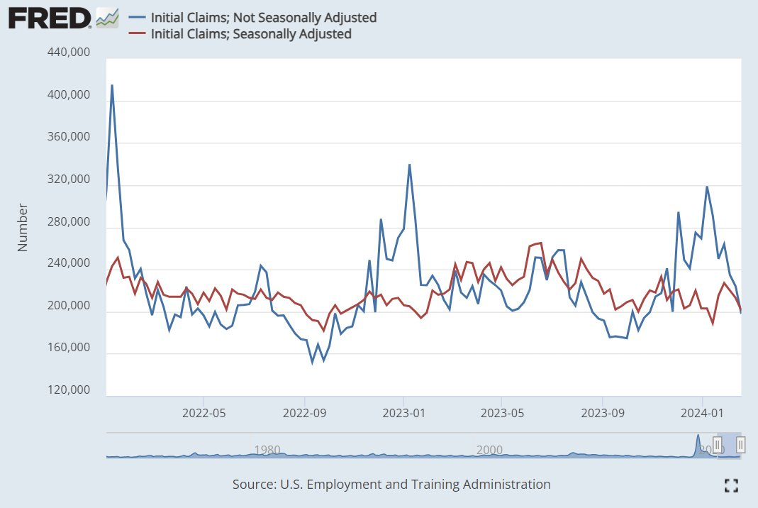 Even adjusting initial claims by the size of the labor force over multiple decades confirms as much: