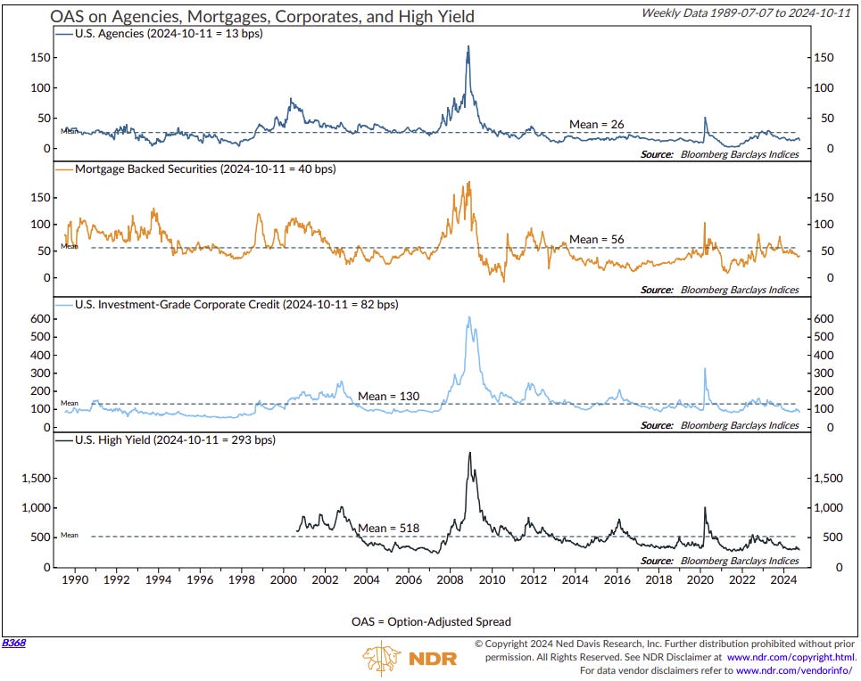So far, these spreads have been narrowing, not widening – despite the temporary twin growth scares from early August and early September.