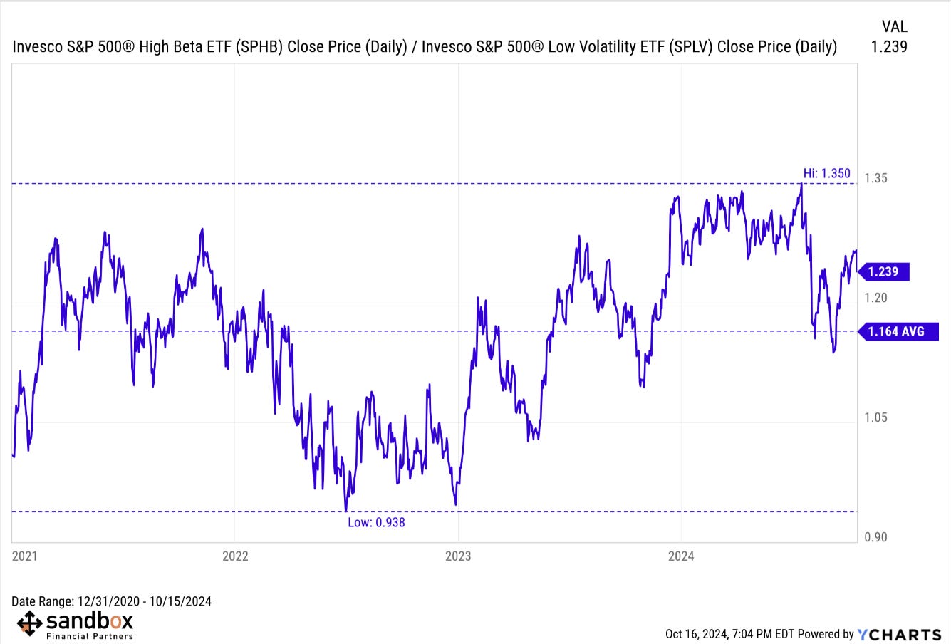 Since this ratio peaked in mid-July, we can see that High Beta stocks have rallied strongly off its near-term bottom in September but have since tapered off (the ratio is currently stalling out). Currently, it remains firmly off the 2024 high.