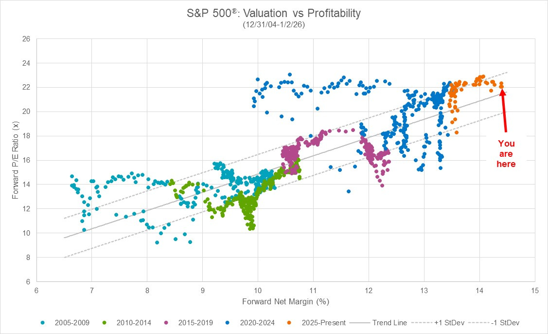 That’s why simply pointing to a 22x forward multiple on the S&P 500 and declaring “bubble” misses the mark. You have to look at valuations alongside profitability.