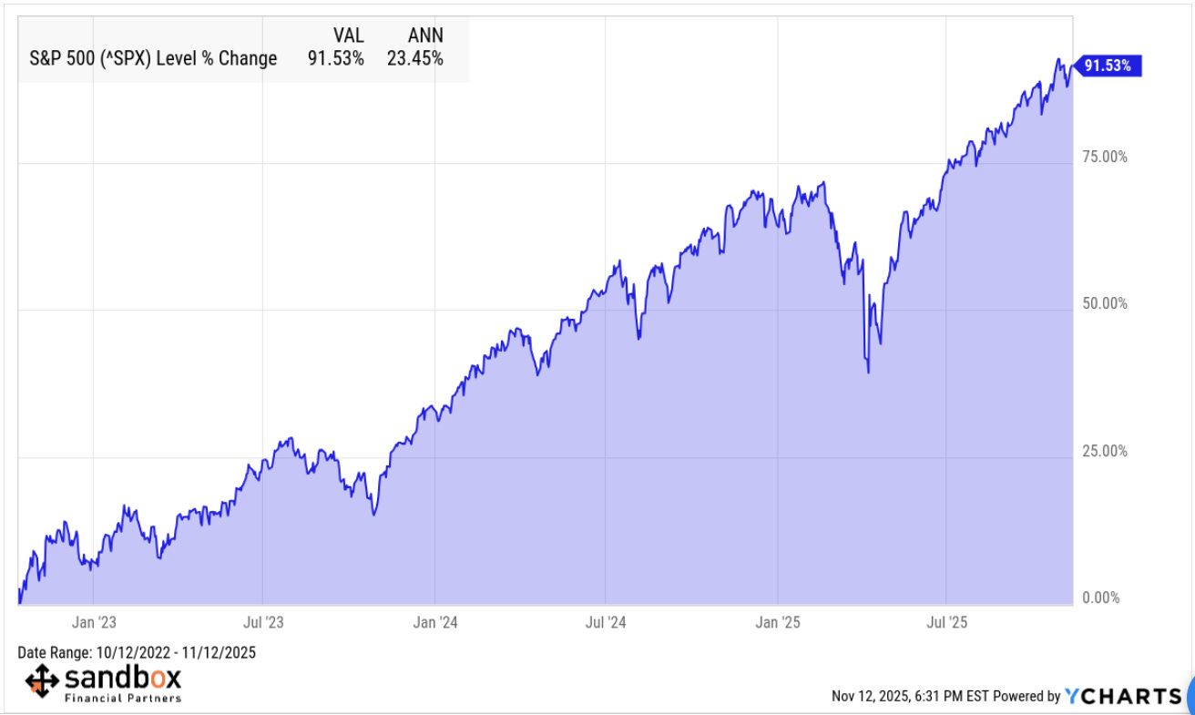 As of today, this bull market for the S&P 500 has delivered a cumulative return of +92% since those October 2022 lows.