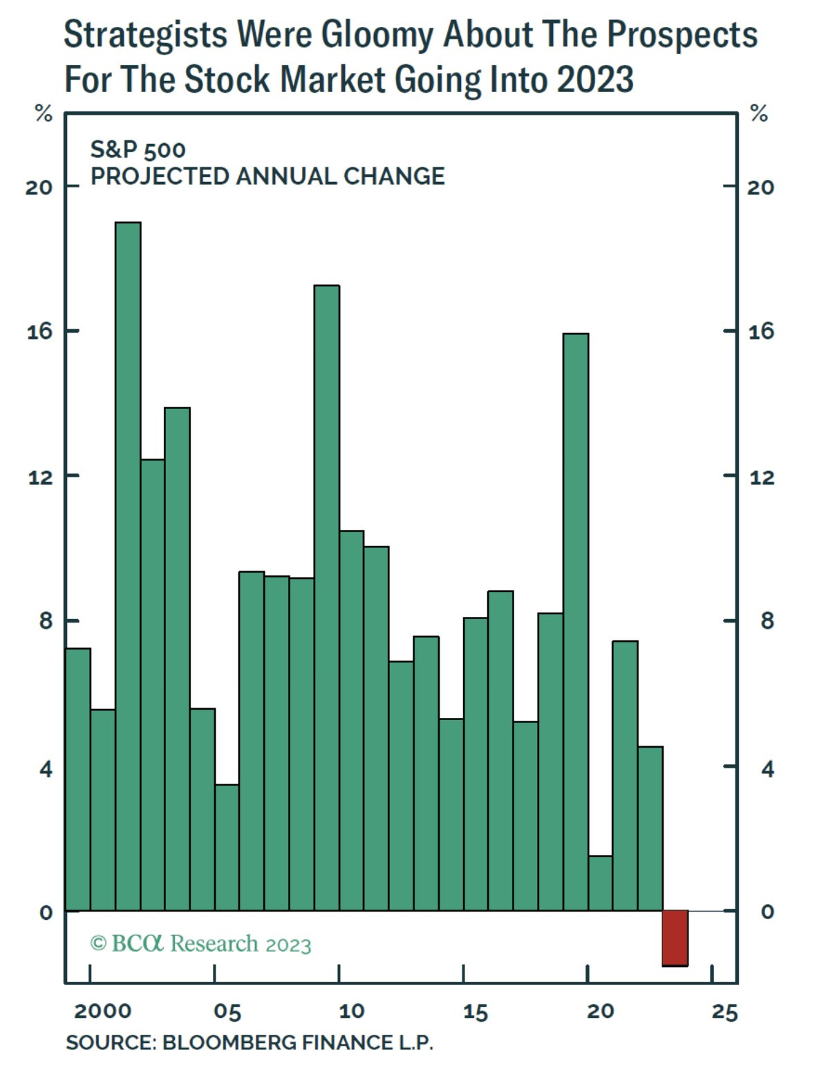 The consensus target called for an outright fall in the stock market in 2023, the first time this century they had predicted a loss.